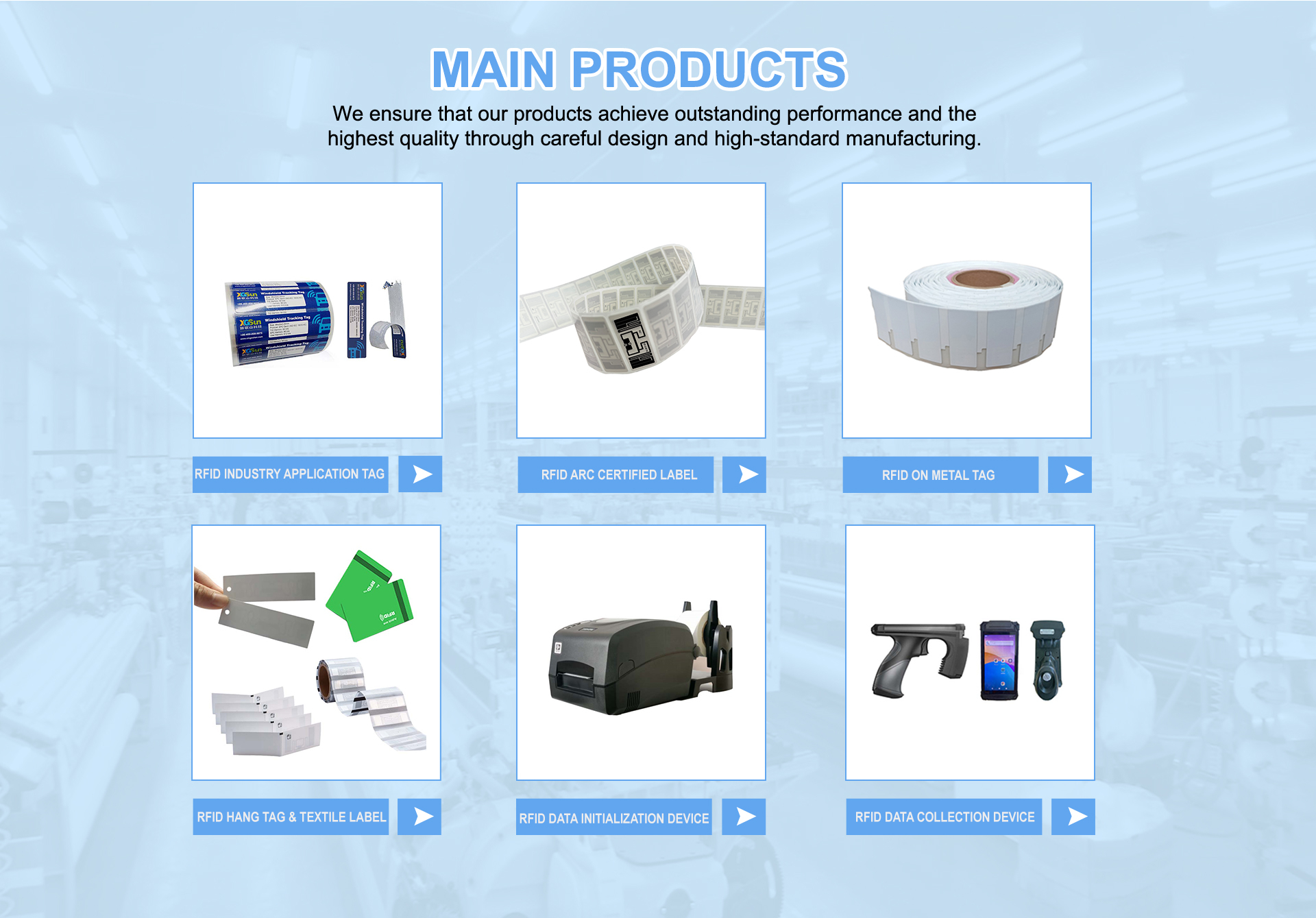المنتجات الرئيسيةعلامات RFID ، قارئات RFID ، طابعات RFID ، حلول صناعة RFID ، بطاقات RFID الذكية